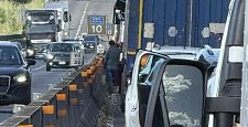 BARBERINO DI MUGELLO. Una volta fuori da una galleria, durante una forte grandinata l'auto è finita fuori controllo impattando i mezzi pesanti. Chiusa l'autostrada