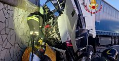 BARBERINO DI MUGELLO. Il mezzo pesante è finito contro un cordolo della volta di una galleria, e la cabina di guida si è completamente accartocciata su se stessa