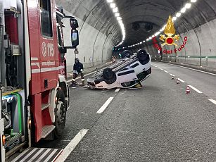 BARBERINO DI MUGELLO. L'incidente all'ingresso della galleria Pulania. Sul posto sono intervenuti i vigili del fuoco e i sanitari del 118. Un ferito