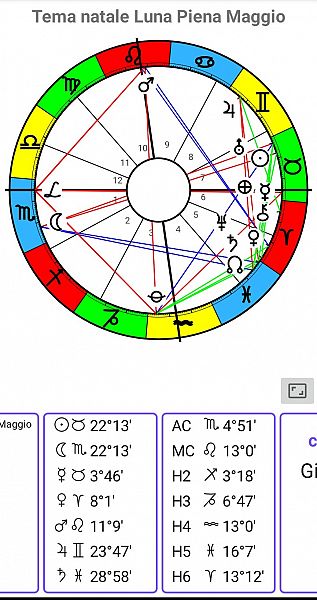 Venere tutto il mese di maggio sará nel segno dell’Ariete, Marte nel segno del Leone, Giove in Gemelli, si potrebbe dedurre, che i segni piú fortunati del mese di maggio saranno i segni di fuoco e i segni di aria. Anche Il segno del Capricorno sale in classifica, non avendo piú l’opposizone di Marte e i segni Vergine e Pesci, che non avranno piú Saturno contro, dal 25 maggio. Saranno questi i segni, che avranno un miglioramento notevole, un cambiamento della situazione molto piú a favore nel mese di giugno, con l’entrata di Giove nel segno del Cancro, che agevolerá anche il Toro e lo Scorpione ed eventualmente il Cancro e il Capricorno.