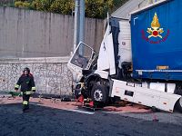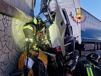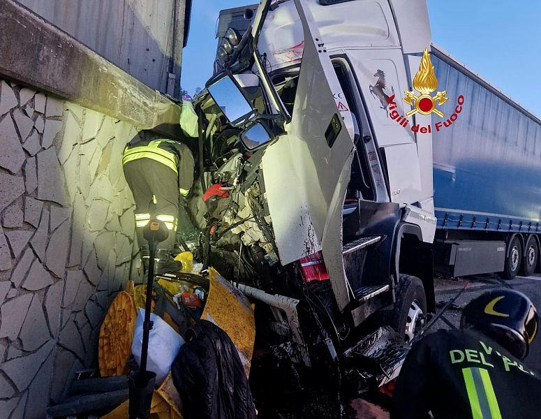 Il mezzo pesante è finito contro un cordolo della volta di una galleria, e la cabina di guida si è completamente accartocciata su se stessa